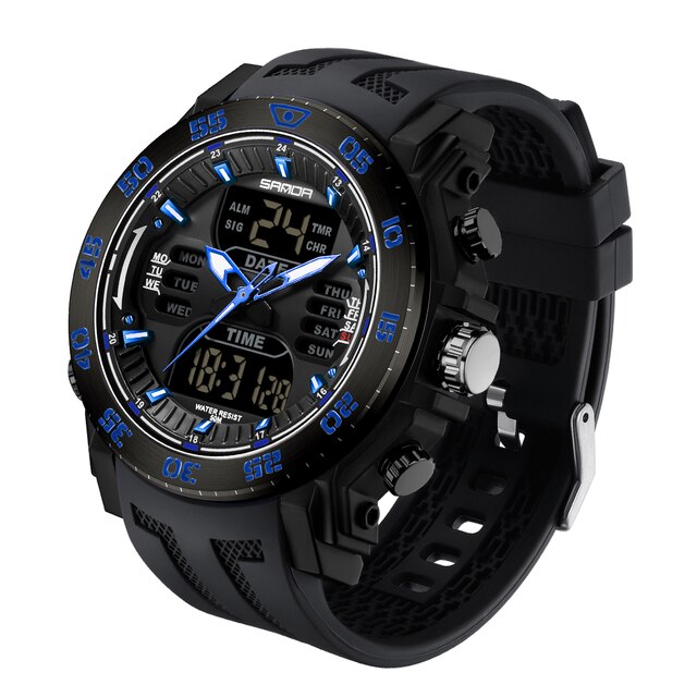 SANDA 2023 Men Watches Sport Military Quartz Watch 50M Waterproof Wristwatch for Male LED Digital Clock Relogios Masculino 6029