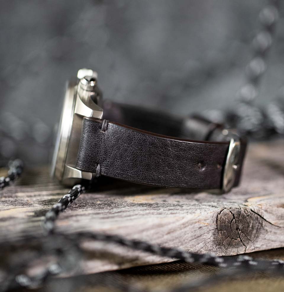 The Model 2 Premium is a more refined version of our Model 2 Classic strap. For the Premium, we took the same tapering 2-piece strap design, but made it out of a combination of Wickett & Craig vegetable tanned lining and Horween top leather. The edges are now painted with several layers of complimentary color, for a cleaner fit and finish.The knots are hand-tied out of thick braided, waxed cotton cord for a hand-made detail. We used both a fixed metal loop as well as a wide leather band for keepers, creating a rugged detail that hints at military straps. By mixing elements of dress and sport straps, the Model 2 Premium has a retro aesthetic that is simultaneously masculine and elegant. Try this on everything from your beat up tool diver to your dress-casual vintage piece. The Model 2 Premium was designed by Worn & Wound and manufactured in New York City.