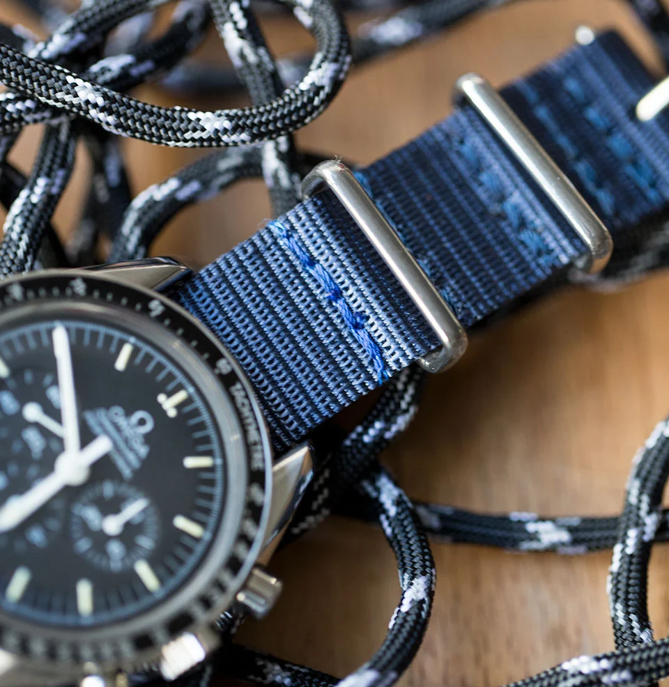 The ADPT Strap is based on a military design that cleverly features a security-band underneath, ensuring that your watch stays on should a spring bar fail. ADPT Strap is a must-have accessory for your wristwatch. Three years in the making, the ADPT Strap is currently the only American-made nylon strap of its kind.