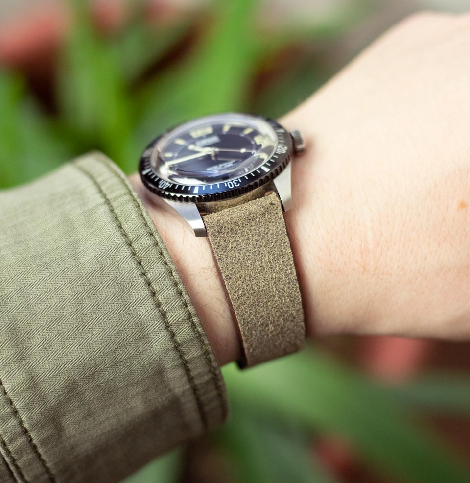 The Hoyt is a minimal but rugged strap made out of a super-tough, matte leather, with a waxy “vintage” character. Extremely earthy, this leather has a unique faded tonality and ability to scar, and scratch allowing it to wear in interesting ways. Designed for modern tool watches and vintage sport watches, the Hoyt is the perfect match for watches with some wear and patina.