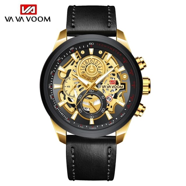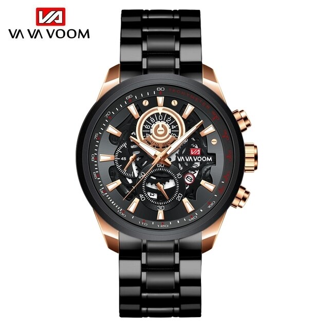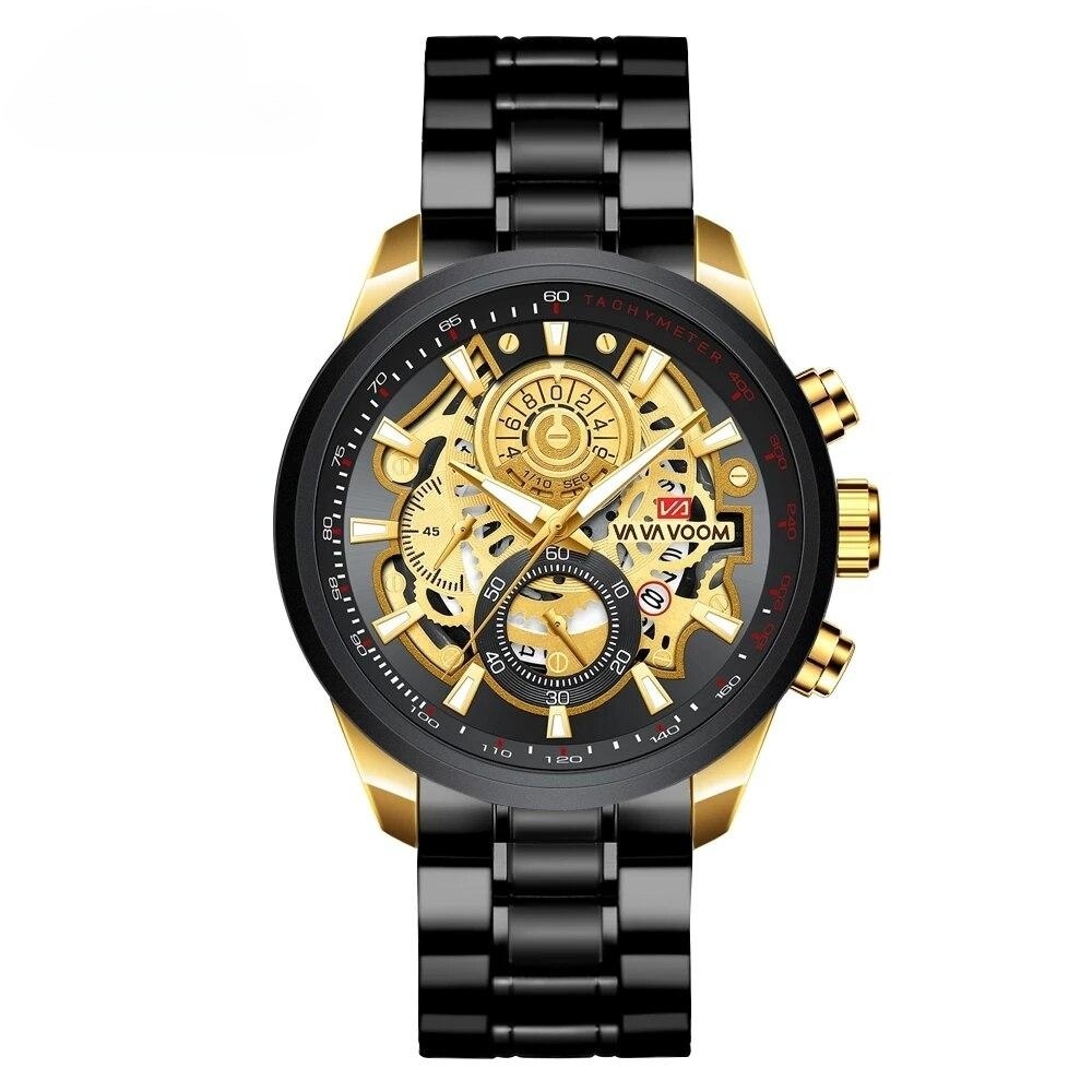 VAVA VOOM Business Mans Watches Quartz Watch Luxury Men's Wrist Watch Black Gold Stainless Steel Case Waterproof Wristwatch